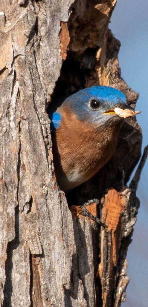 A,Male,Eastern,Bluebird,Removes,A,Wood,Chip,From,A A male Eastern Bluebird removes a wood chip from a nesting hole
