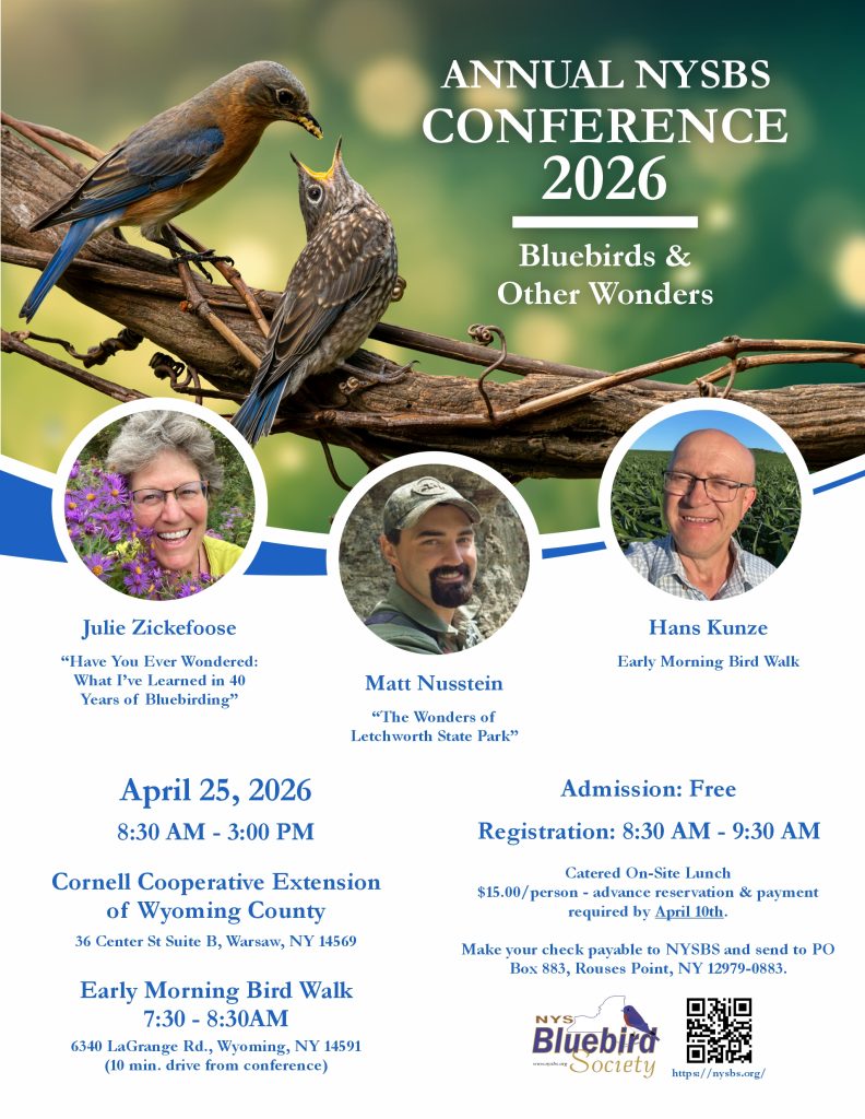 * Reserve your $15 pp catered lunch by sending a check to: NYSBS; PO Box 883; Rouses Point, NY; 12979 by Wednesday, April 10, 2026
